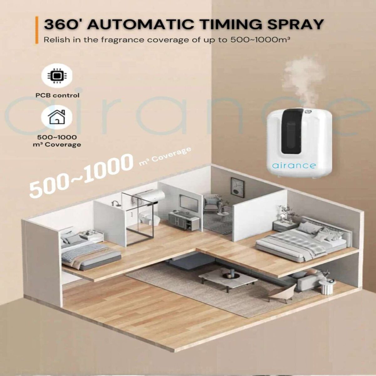 Airance Scent Diffuser SD02 Area Coverage. Published 30 March 2026 at 1500 × 1500 in Airance Commercial Scent Diffuser – Large Area With HVAC Connect – SD-03 ← Previous Next →